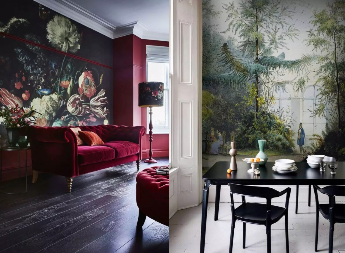 Фотообои, фрески, картины во всю стену – это все относится к монументальным изображениям. Десять лет назад были популярны фотообои с природой и приморскими городками. А в 2024 году можно остановить выбор на абстрактных рисунках, графике, портретах или этно-стиле. Так, увлечение восточной культурой перекочевало и в современную отделку. Поэтому сегодня популярны не только японские сакуры, но и китайская живопись.