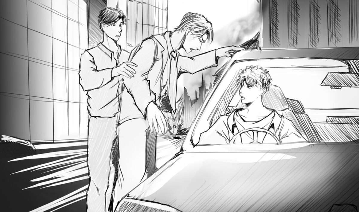 Не задумываясь, мы рванули с места в направлении к Олегу, по пути нам попадались кучи одежды. Я знал, что это закончится плохо, нужно было как можно скорее увести его в здание. Глеб бежал впереди меня; он очень торопился догнать нашего товарища. Когда мы подбежали к нему, Олег пытался завести машину. У него не выходило, автомобиль никак не реагировал на его действия. Машина не просто не заводилась, а вообще никак не реагировала. Ситуация сильно напоминала проблему с телефоном. Олег неожиданно вскочил и подошёл к следующей машине, но результат был тем же. Наш друг, сидя за рулём, начал нервничать, кричать и бить изо всех сил по рулю. Я его не понимал, видимо, он беспокоился о семье. Глеб силой вытащил его из машины, и Олег упал возле его ног.