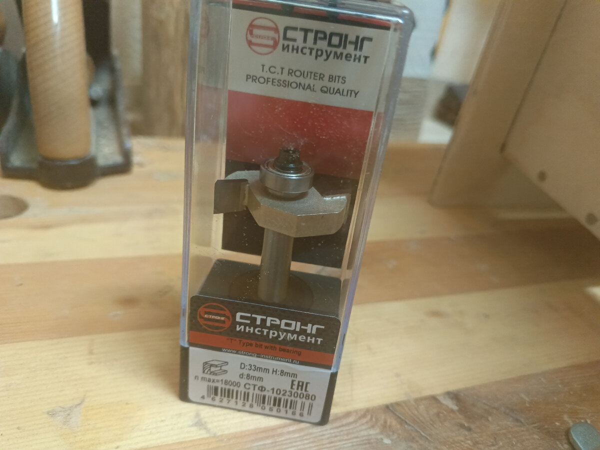 При склеивании мебельного щита, для придания дополнительной прочности в ответственных соединениях, при склеивании сиденья табуретки или стула, необходимо профрезеровать паз по кромке каждой доски и вставить тонкую рейку. Получается соединение на вставной шип - паз. Для этого необходимо приобрести вот такую кромочную фрезу с подшипником. На производителя не обращайте внимание, взял для примера (неплохая фреза и стоит не дорого). Данная фреза с хвостиком 8 мм. Для каждого фрезера подбираем свой диаметр, встречается 6, 8 и 12 мм, обращайте на это внимание. Фрезеровать можно как вручную ведя фрезер вдоль доски, так и в фрезерном столе. Мне удобно было использовать фрезерный столик. Ну а дальше просто, ведем обратываемую деталь относительно фрезы. Лучше всего делать 2 или 3 прохода, снимая небольшое количество материала постепенно, пока кромка доски не упрётся в подшипник. Получается вот такой паз в доске, ну а дальше на циркулярной или ленточной пиле нарезаем рейки по 8 мм. Старайтесь что