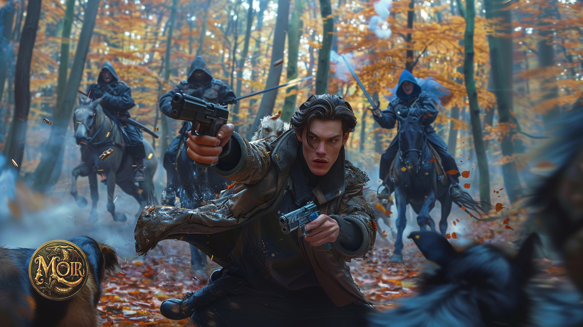 К нему подошёл какой-то тип. Он тоже владел лесом. — Ну что, щенок, ты же не думал, что один так умеешь?! — Кто вы такой?! Что вы хотите?! — спросил в ужасе Павел, пытаясь выбраться. — Важно кто ты, а не кто я! — ответил ему мерзкий голос. Раздался треск и выстрелы. Тип, что повалил Павла, отмахнул от себя пули с помощью силы. Он вдруг стал очень озадачен и оскалился на своего нового врага. Павел не видел, кто это. Совсем вскоре раздался шум лезвия ножа, и тип упал мёртвым на землю. Корни ослабли, и Павел смог их раскрыть. — Быстро, бежим! — крикнул ему незнакомец. Павел бежал вместе со своим спасителем. В какой-то момент он было подумал, что это часть его сегодняшнего испытания, но смерть того типа была более чем натуральной. Внезапно Павел учуял запах собак впереди себя. — Они пошли навстречу! — крикнул он незнакомцу. — Чёрт! — ругнулся он и достал два пистолета. — Ложись на землю! Из воздуха материализовались десять цепных псов. Всадники объявились позади псов. Павел всего насчитал