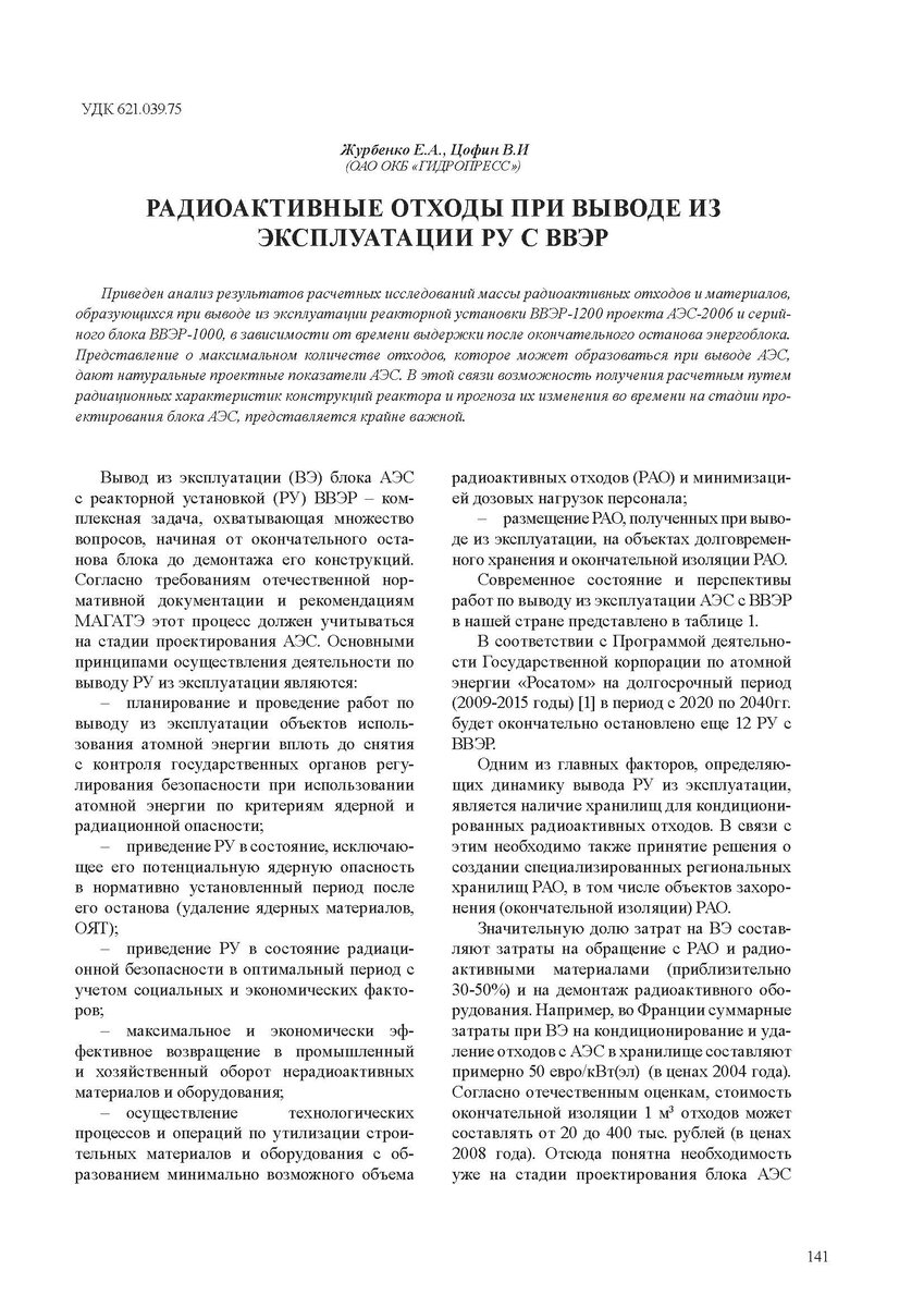 Радиоактивные отходы при выводе из эксплуатации РУ с ВВЭР