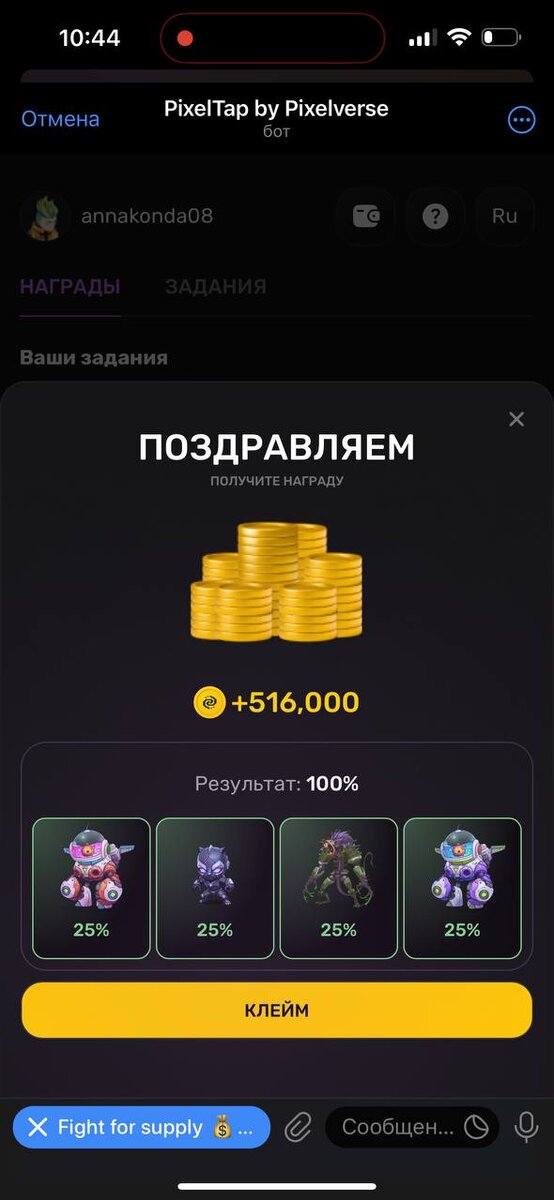 PixelTap - новый перспективный проект Pixeltap от известных разработчиков, во главе стоит бывший руководитель Binance и профессионалы из Zerion. Ссылка на приложение: https://t.me/pixelversexyzbot Подписывайся на мой канал, если хочешь быть в курсе актуальных новостей по заработку крипты Как забрать токены за комбо? 1. Запускаем бота 2. Переходим в раздел Награды, Daily Combo 3. Расставляем карточки в порядке, как указано на скрине ❗️ВАЖНО: некоторые карточки очень схожи, будьте внимательны