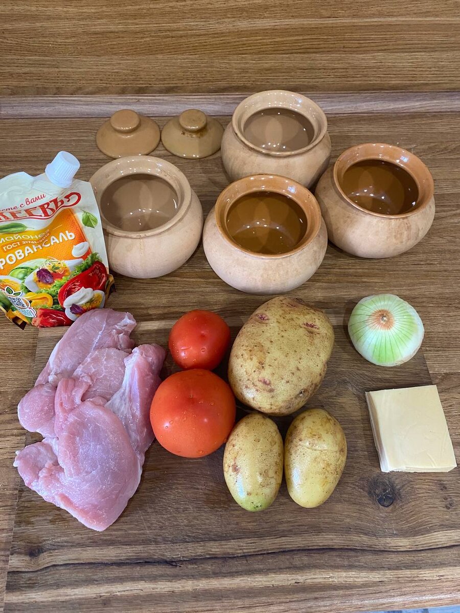 Свинина с овощами в горшочках, запечённая с ароматными травами и специями. Нежное мясо, сочные овощи и пряный соус создают неповторимый вкус и аромат этого блюда. Для создания этого шедевра на четыре горшочка Вам понадобится: Картофель – 3 шт. большие Свинина – 500 гр. Помидоры – 2 шт. Лук репчатый - 1 шт. Майонез – 4 ст. ложки. Соль – по вкусу Перец – по вкусу Сыр твёрдый – 50 гр. (сыра можно использовать побольше если любите запеченную сырную шапочку) А теперь самое интересное: Вымойте и обсушите мясо и овощи. Помойте и почистите картофель и лук. Подготовьте глубокую сковороду и 4 горшочка с крышками для запекания. Разогрейте духовку до 180 градусов. Нарежьте мясо и картофель кубиками. Лук и помидор кольцами/полукольцами. Налейте на сковороду масло, разогрейте его на сильном огне. Обжарьте мясо, периодически помешивая. Разложите свинину поровну по горшочкам. Затем поверх свинины кладем лук и смазываем майонезом. Далее заливаем теплой водой так, чтобы мясо было полностью покрыто. В
