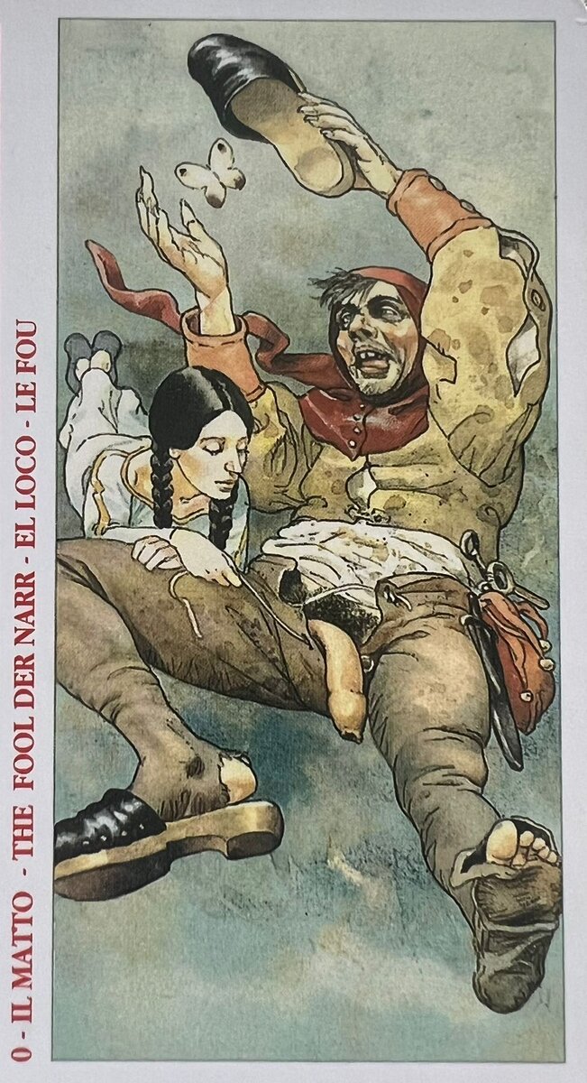 ТАРО ДЕКАМЕРОН ЗНАЧЕНИЕ КАРТЫ ШУТ На практике я пришла к выводу, что чтение колоды Декамерон эффективно только с мужской точки сборки, в противном случае колода бесполезна. Но если читать ее правильно, вы удивитесь, насколько она четко и грамотно раскрывает ситуацию. Хочу поделиться знаниями, и сделала для Вас линейку толкования, раскрываю свои мысли в форме трактовок. Итак, приступим. ОПИСАНИЕ На карте изображен неряшливый, неухоженный детина в одной туфле. Поза расслабленная, лицо искажено гримасой безумия, взгляд направлен на бабочку, картинка застыла в нелепой попытке поймать ее в туфлю, создается впечателение, что от безделья. К детине прильнула аккуратная девчушка с косичками и прямым пробором, она заинтересованно смотрит на вывалившийся из штанов детины член, создается впечатление, что ее расстраивает его "полшестого". ОТНОШЕНИЕ МУЖЧИНЫ Крайне безответственное, и не заинтересованное в том моменте, который вы хотите раскрыть. Если спрашиваете - думает обо мне или наблюдает за мн