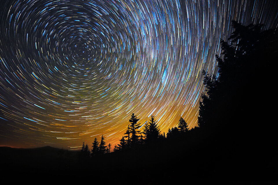 Если сделать снимок ночного неба с большой выдержкой, то мы увидим, что все звезды вращаются вокруг Полярной звезды. Именно туда направлена ось вращения Земли в северном полушарии.