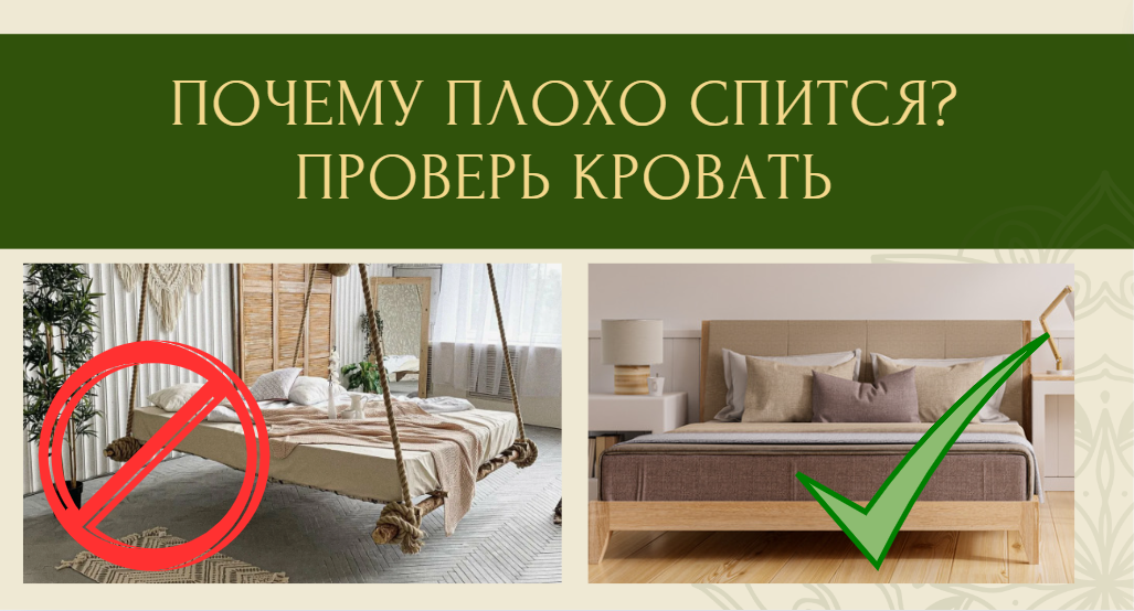 Ты не высыпаешься, хотя в комнате тихо? Нет, это не возрастное! Проверь свою кровать по списку. Список подготовлен в соответствии с Васту - системой гармонизации дома. Вот почему ты плохо спишь: 1. Неудобная подушка или матрас У нас разные тела и оттого разные предпочтения. Кто-то лучше высыпается на мягком матрасе, кто-то на твёрдом. Можно поэкспериментировать, подложив под простыню дополнительное одеяло. Если хоть раз после сна было чувство, что шею больно повернуть - лучше подобрать ортопедическую подушку. 2. В комнате не проветрено, душно, неприятный запах Обязательно проветривай спальню перед сном не менее 15 минут. Также, если в комнате неприятные запахи, во сне мозг может обрабатывать их и выдавать неприятные образы. Если ты переборщишь с ароматерапией, и запах слишком сильный, хоть и приятный - это тоже будет давить во время сна. Аромат, как и лекарство, хорош в меру. 3. Возле кровати стоит много цветов, которые дышат ночью Растения, не только фотосинтезируют, выделяя кисло