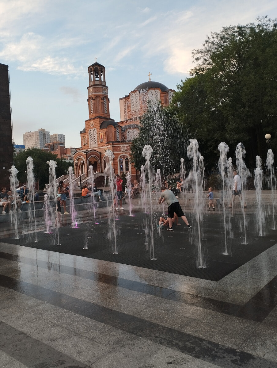 Вечером в соседнем Ростове-на-Дону совсем иная жизнь. Жизнь, которая кипела в Донецке более десяти лет назад. Впрочем, нет, такой у нас никогда не было. Не только потому, что нет в моем городе ни такой чудесной старинной архитектуры, ни подобного свето-музыкального фонтана, в котором беззаботно резвятся дети. И не потому, что у нас на бульваре Пушкина, как здесь на улице Пушкинской, не выступал подобный небольшой молодежный оркестр. И не потому, что не видели мы подобного коллектива школы танцев, старательно исполняющего замысловатые движения под зажигательную музыку. Просто Донецк - город более суровый. И по этой причине у нас нет на бульваре Пушкина таких узнаваемых скульптур, как этот вдохновенный скрипач или незабываемый мастер слова со своим любимым портфелем. И люди в Донецке не привыкли гулять по бульвару Пушкина в таком количестве. Или я уже не помню, какой была прежняя мирная жизнь Донецка, потому смотрю по сторонам с недоумением и постоянно ощущаю себя в параллельной реально