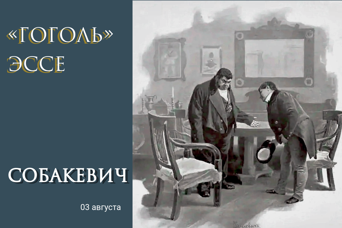 Попытаемся постичь характер Михаила Семёныча. По его мнению, всё городское общество — это мошенники и разбойники. Прокурор — исключение, и, видимо, потому, что в нём сильна кровь неандертальца — он постоянно моргает одним глазом, как и парень-мигач с балалайкой. Но даже своего соплеменника-прокурора Семёныч в итоге клеймит свиньёй. Мне кажется очевидным, что у Собакевича характер хлеще прокурорского, а по совместительству на него повешены ещё и функции палача или ката (слово, имеющее отношение к деревне Подкатиловке). Человеческую душу Семёныч сравнивает с пареной репой, настолько она мягка и несовершенна в его понимании.