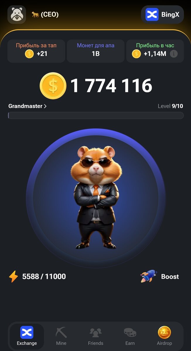 Добро пожаловать в Hamster Kombat 🐹 Отныне вы — директор криптобиржи. Тапай по экрану, собирай монеты, качай пассивный доход, разрабатывай собственную стратегию дохода. Разработчик в свою очередь оценит это во время листинга токена. В момент листинга вам дадут монеты которые вы сможете обменять на $ и вывести на карту за счет сделки p2p в самом Telegram. На самом деле заработать токены очень просто вам необходимо заходить в игру и забирать прибыль которая накапливается в течение трех часов. Очень важна прибыль в час которая накапливается засчет прокаченых карточек которые вы приобретаете за накопленные монеты. Никаких вложений делать не нужно разве что уделять пару минут вашего времени. Присоединяйся по моей ссылке и получи стартовый бонус!