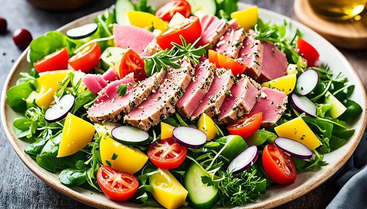 Салат "Оливье" с тунцом сашими - уникальный вкус праздника
