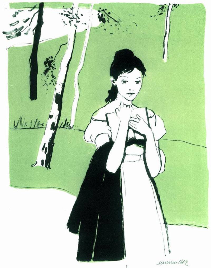 Удивительно, но эти иллюстрации к «Евгению Онегину» создала одна художница — Лидия Яковлевна Тимошенко (1903–1976). Эта работа заняла более 20 лет и стала для нее главным делом жизни. Первый, классический, вариант вышел в 1958 году, второй — в 1966-м, в то время критики говорили о нем: «не Пушкин, а какой-то неореализм итальянский». Сейчас оба издания высоко ценятся экспертами и читателями и считаются одними из лучших иллюстраций к «Онегину».