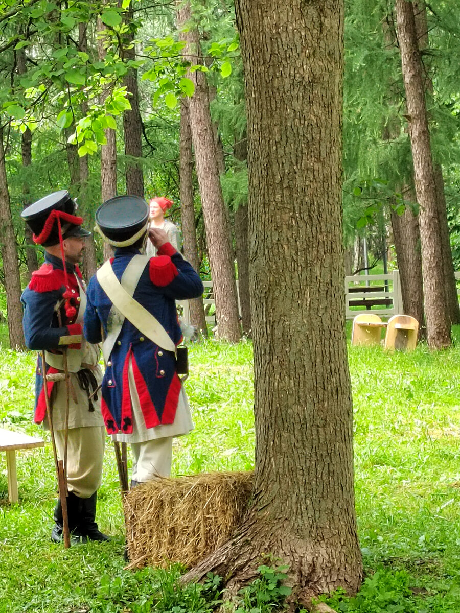 В Москве проходит очередной фестиваль "Времена и эпохи". А в этом году организовали его площадки не только в центре города, но на окраинах, так сказать... В нашем парке тема погружения Отечественная, война 1812 года. Поэтому полянки и опушки заполонили гусары, крестьяне и крестьянки, дамы и кавалеры.