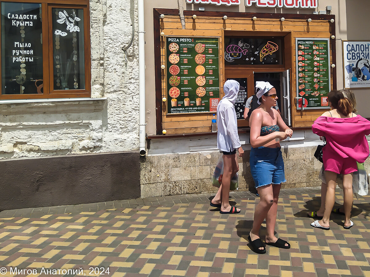 Если быть точным, то в обратной последовательности. Сначала мы поехали в Коктебель, чтобы открыть свой личный купальный сезон. А потом уже решили сделать небольшой крюк, чтобы взять в Феодосии пиццу. Вы можете спросить, отчего мы так поздно надумали с открытием купального сезона? Ведь в Крыму жара уже две недели и вода в море давно прогрелась... В том-то и дело, что жара. Не хочется никуда двигаться из прохлады своего сада. Ну к тому же не только жара, но и солнце с утра до вечера, индекс ультрафиолета приближается к максимальному. А сегодня на небе облака, так что жить можно, вот и двинулись в Коктебель. К морю мы ездим не по Тавриде, а по старой дороге Феодосия-Симферополь. Она не опустела с открытием Тавриды. Машин на ней по-прежнему достаточно, однако тех пробок, которые были раньше, больше нет. Асфальт ровный, разметка чёткая, ехать приятно. Почему именно в Коктебель? Давно там не были, интересно стало посмотреть, в какой стадии там сейчас работы по реконструкции набережной? Давн