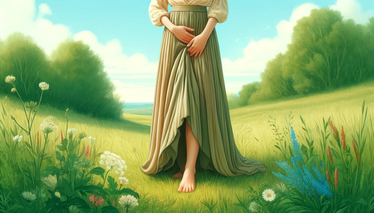 - Ношение длинной юбки на природе: Проведите время на природе, надевая длинную юбку. Такая одежда способствует свободному течению энергии в теле, помогает установить связь с землей и природой. Длинная юбка позволяет женщинам почувствовать себя более женственными и связанными с природными элементами, что способствует улучшению общего самочувствия и внутренней гармонии.