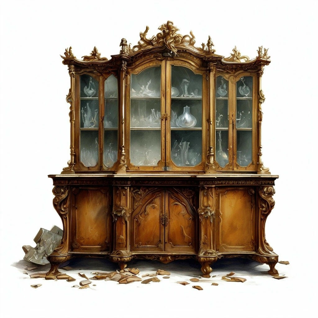 Софья встала со стула и следила за сестрой. Полка была выше Карины, девочка встала на цыпочки и потянулась к заветной цели, но роста все равно не хватило и Карина смогла только мазнуть пальцами по фигурке. Этого оказалось достаточно, фигурка чуть накренилась в одну сторону, потом в другую и возвращаясь обратно, закрутилась и упала, зацепив с собой несколько чашек из сервиза и хрустальные фужеры.
