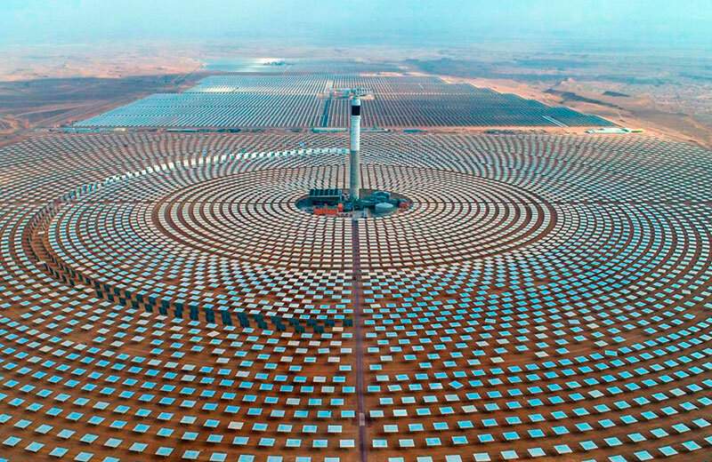 Сегодня мы знаем гораздо больше, поэтому всё чаще слышим о крупных инвестициях в инфраструктуру солнечной энергетики. В 2018 году энергетический комплекс Нур-Урзазат был запущен в Марокко, то есть в интересующей нас области, поскольку значительная часть Сахары входит в Марокко.