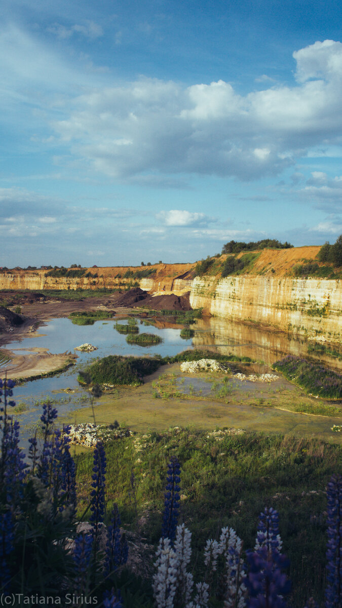 В прошлую субботу мы спонтанно поехали в Подмосковье в Домодедовское направление, в надежде найти что-то интересное. И нашли! Мы доехали до Сртатотипа Московского яруса. Мы не ожидали, что нам откроется такая красота. Смесь природы и человеческой деятельности. Мы вышли из такси на шоссе и заприметили небольшую дорогу через люпины. Мы прошли по ней и спустились в сам карьер. Это место достойно быть снято в каких-то фильмах или клипах. Думаю, что кто-то уже до этого додумался. Кваканье лягушек, крики чаек и отсутствие людей. Красота! Путешествие домой оказалось отдельным квестом. Такси к нам не приезжало. Пришлось выкрутить на максимум коммуникативные навыки и уехать обратно в Москву автостопом. Очень советую данное место для посещения летом, когда хочется уехать из города, а куда - не понятно.