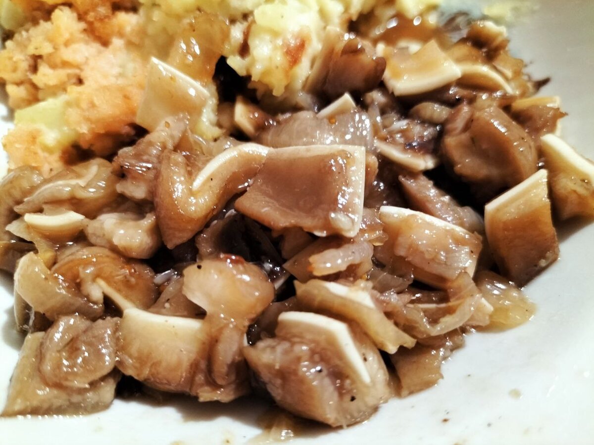 Отличное дополнение к пюре или просто жареные ароматные уши выложить на тарелки и к ним сделать салат из свежих овощей.