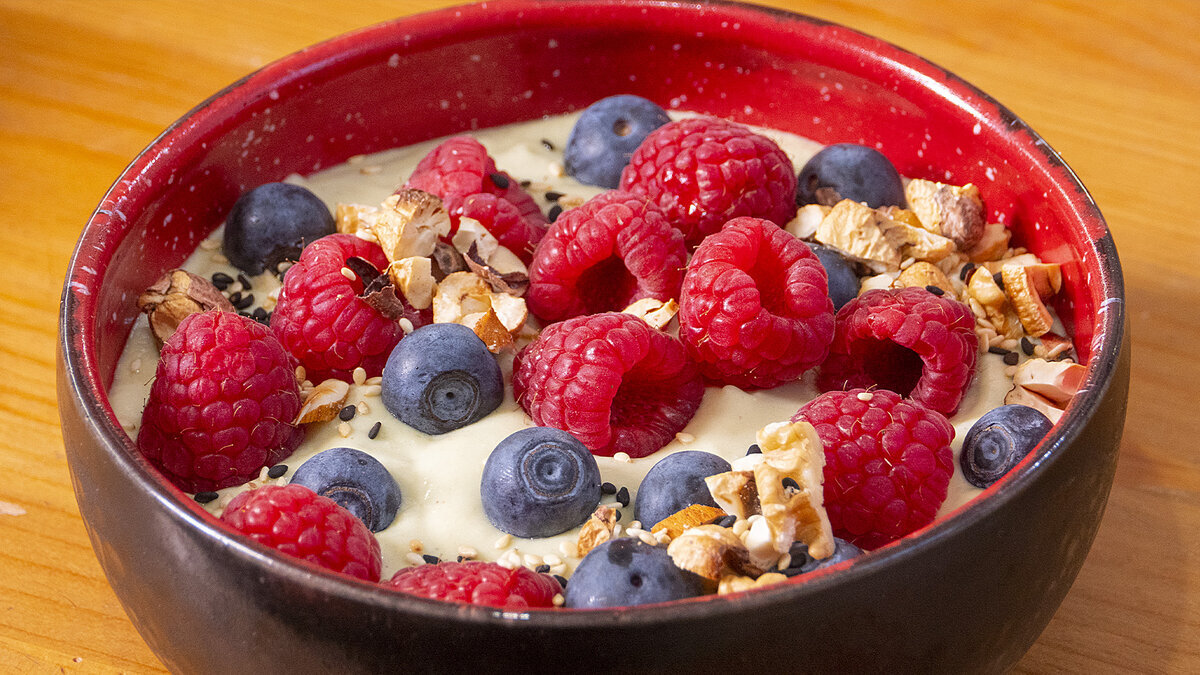 Смешайте творог с медом и ванильным экстрактом. Сформируйте сырники и украсьте фруктами или ягодами.
