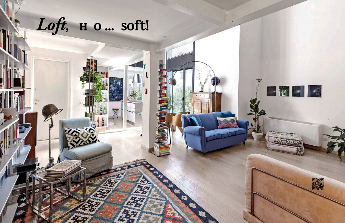 Илария и Маттео, итальянцы, 37 лет ей и 42 ему. Работают в банковской сфере и имеют троих детей, Людовико, Томмазо и Леонардо. Когда они наткнулись на этот "рустик" в районе Навильи, Милан, то с первого же мгновения увидели в нём большие возможности. В прошлом в этом помещении сначала располагался офис недвижимости, а затем выставочный зал для таких мероприятий, как Salone del Mobile. «Нам с самого начала было ясно, что у этого объекта имеется большой потенциал, хотя в то время оно было очень безличным и далеким от нашего представления о доме», - рассказывает Илария. Поэтому они начали очень тщательную архитектурную реконструкцию: ванные комнаты были переделаны, чтобы приспособить их для домашнего использования, а на мезонине были организованы новые помещения. Дух лофта был сохранён благодаря металлу, большому количеству белой плитки и отделки с эффектом бетона. Пространство перед лестницей было оборудовано металлическими книжными шкафами с фиксацией потолок/пол: идея, которая "решает"