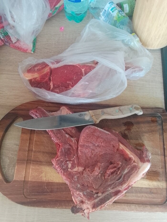 Или простая сытная вкусная еда многодетного дядьки средних лет, любящего хорошо поесть домашней еды без особых заморочек. Итак, заранее покупаю. Мясо говядина, можно без изысков (у меня, кажется, толстый край 2 шт) Лук-чеснок. Перцы болгарские. Картошку. Пиво тёмное. Соль и пряности у меня дома есть всегда. Детей отправляю гулять, чтобы не отвлекали. Разделываю говядину, кости и жилы идут на варку. Бульон потребуется в конце процесса. После разделки режу мясо кусочками поперёк волокон, у меня получился килограмм. Режу лук четвертькольцами, я адепт концепции "мясо луком не испортишь" и взял 3 больших луковицы. Обнаружил, что дети успели умять все помидоры и пару перцев. Режу что есть. Из холодильника достал банку с остатками самовяленных помидоров с чесноком и травами в оливковом масле. Их мало, но запаха от них много, заменят помидоры свежие. Прогреваю масло в казане. Жарю мясо с луком, солю, перчу, добавляю горчицу зёрнами и немного копчёной паприки, петрушки и базилика, засыпаю поруб