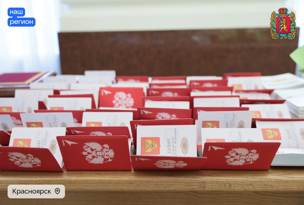 Главный документ гражданина из рук губернатора Михаила Котюкова и врио начальника ГУ МВД по Красноярскому краю Юрия Завьялова получили 40 школьников.