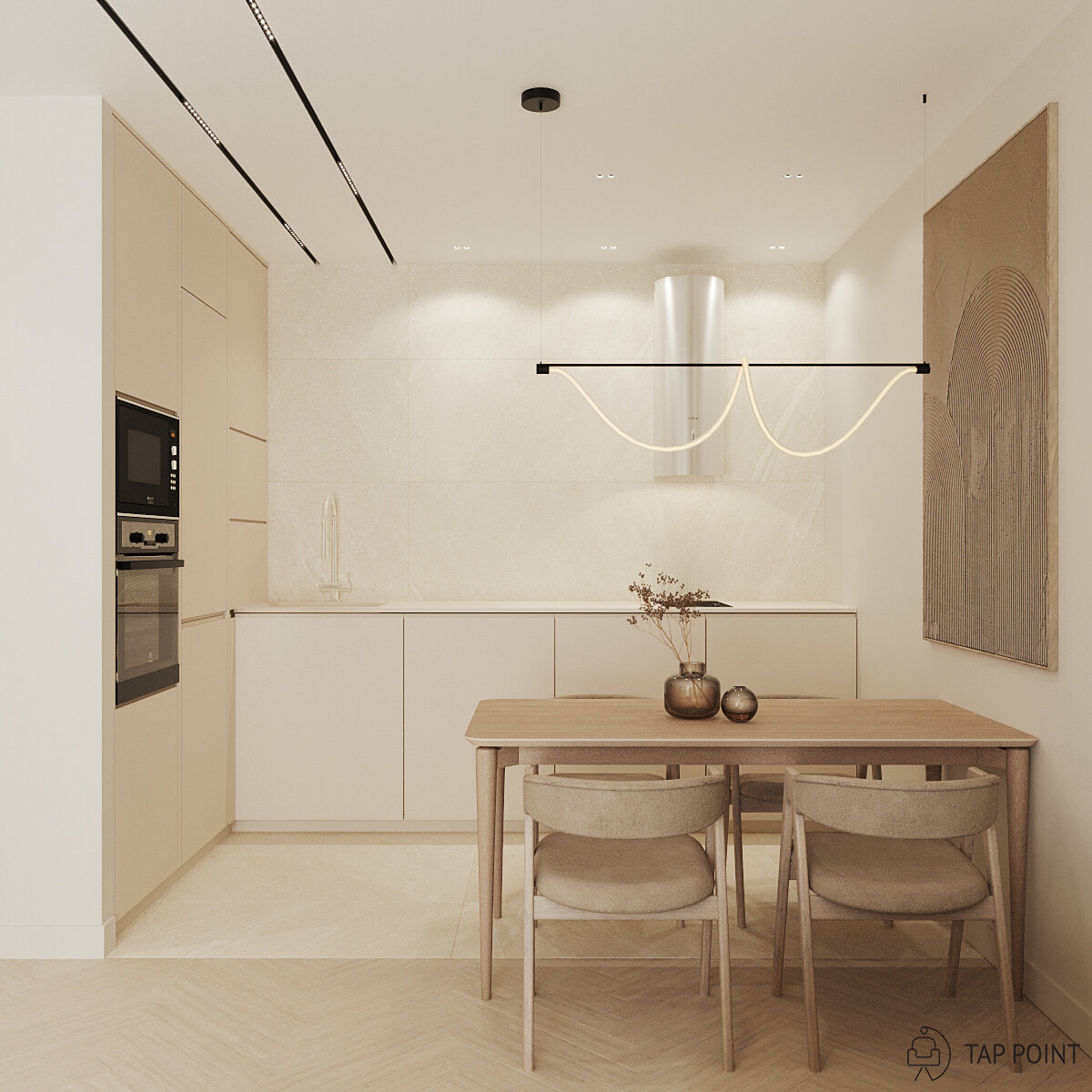 Многим людям хотелось бы сделать кухонный гарнитур минуя верхние шкафы. Сушилку для посуды легко и удобно, особенно если в квартире маленькие дети, расположить в нижнем ярусе. А что делать с защитой стены? Как правило, решение в пользу плитки на всю поверхность (либо максимально незаметную в тональности столешницы и стен, либо акцентную): Но можно пойти путем проще, и плитку сделать лишь на самую "пачкубельную" часть: И тут панический вопрос: как стыковать краску и плитку? На самом деле не сложно. И стыковать можно даже при использовании "молярного флизелина" ( обоев под покраску без рельефа, мы рекомендуем от 150гр плотность). Вот, например, стык: плитка, над ней покраска на "молярный флизелин" справа откос оконный с покраской на штукатурку и стеклохолст: Такой прием, как неполная стена в плитке, часто используется и в ванных комнатах. Латыпова Юлия, руководитель дизайн студии TAP POINT