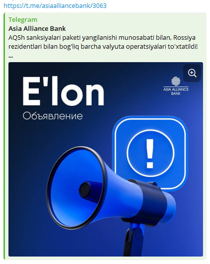 Asia Alliance Bank остановил все валютные операции с российскими резидентами из-за санкций США