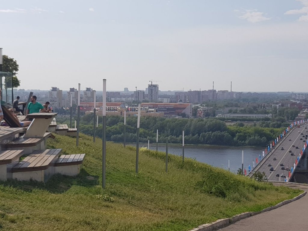 Фальшфасады из сетки повесили на два многоквартирных дома возле Нижегородской ярмарки. Закрытыми оказались девятиэтажки № 26 и № 28 по улице Совнаркомовской. Фотографии жилых зданий прислали в редакцию GIPERNN.RU нижегородцы. Кадры были сделаны с территории «Парка 800» недалеко от Канавинского моста в нагорной части столицы Приволжья. На фото хорошо видно здание Нижегородской ярмарки, а позади нее — силуэты двух домов, скрытых фальшфасадами. На одном из них можно заметить надпись на английском языке «Нижний Новгород — идеальное окно в Россию». Ранее в Ассоциации пяти ДУКов Нижнего Новгорода GIPERNN.RU пояснили, что сетки необходимы для проведения капитального ремонта в многоквартирных домах. При выполнении работ они будут выполнять защитную функцию, огораживая тротуары от падения элементов покрытия. В пресс-службе также отметили, что сетки не являются глухими. Через них проходит свет, а при жаре в квартирах создается прохлада. Однако горожане, напротив, с появлением фальшфасада стали ж