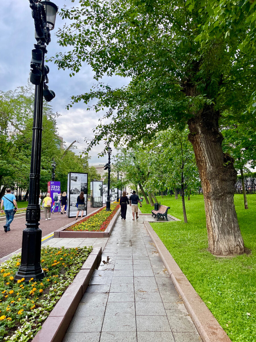 - Этим вечером я решила прогуляться перед спектаклем по Сретенскому бульвару и Чистым прудам. Только прошел сильный ливень и на бульваре лужи.