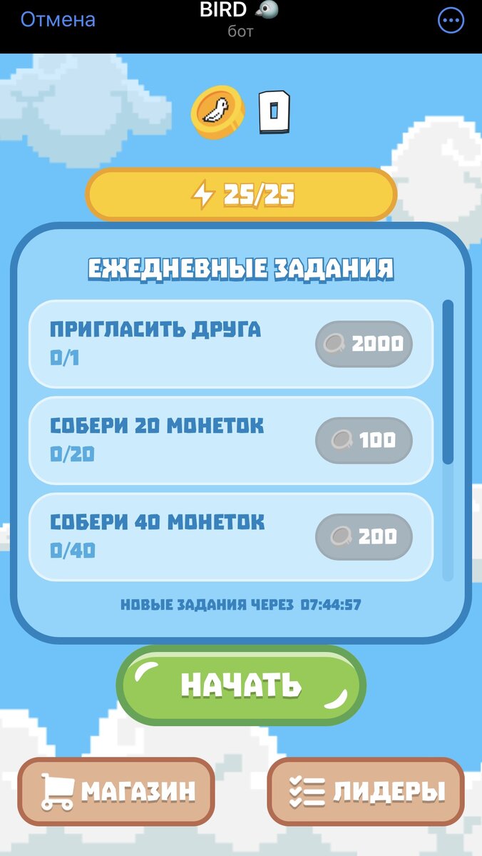 BIRD - самая новая игра где вы можете стать топ уже сегодня! Друзья, опоздали с Notcoin, Blum и Hamset Kombat? Топов уже не догнать. Поэтому самое время начать другой проект, где вы можете стать топом за 1-2 дня! Игра называется BIRD. Это новая платформа на блокчейне TON, первая GameFi TON игра, которая раздаст добытые монеты как было в Notcoin. У вас есть реальная возможность быть топ-100, пока волна хайпа не накрыла эту игру. Скорее переходи в телеграм и подключайся к игре, чтобы не терять время. Там же вы узнаете, когда можно будет обменять монеты на токены. Вы обязательно удивитесь и начнете играть прямо сейчас. Ссылка на бота -