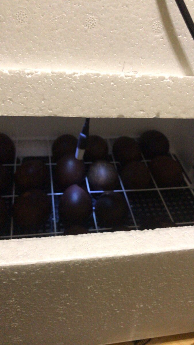 Закладывайте в инкубатор крупные яйца массой не менее 65 грамм. Выбирайте самые темные яйца это позволяет сохранить генетические качества. Важно, чтобы родители не были братом и сестрой и были в стандарте породы по внешним данным. Я уже писал, что проблемой, с которой сталкиваются заводчики, является толстая скорлупа. Если не помочь цыплятам вовремя вылезти, то это может привести к их смерти. Избежать отхода цыплят от недостатка кислорода под толстой скорлупой, можно путем хорошего проветривания во второй половине инкубации – начиная с десятого дня. Чтобы зародыш не присох к оболочке, яйца требуется переворачивать чаще. Поднять влажность воздуха в конце инкубационного срока поможет опрыскивание водой, показатель влажности не должен быть ниже 75%. В момент вывода температура в инкубаторе должна быть 36,8-37,0 градусов. В момент проклева требуется следить за тем, чтобы это место не упиралось в пол или другое яйцо Нужно помогать цыплятам, разбивать скорлупу от места проклева. Если соблю