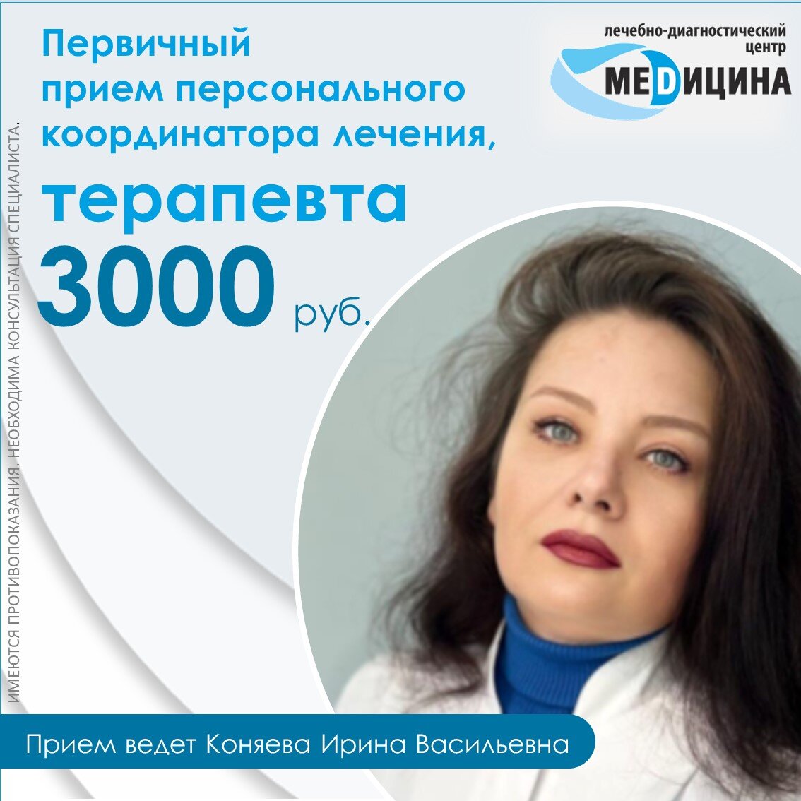 Персональный координатор лечения, врач -терапевт, профпатолог ООО ЛДЦ Медицина Коняева Ирина Васильевна.
