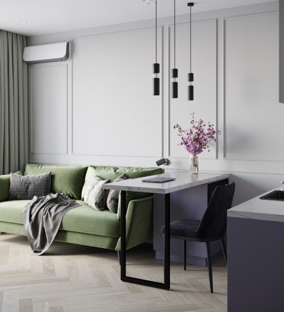 Однокомнатная квартира подразумевает бОльший расход тепла и электроэнергии. Это отразится не только на экологии, но и на вашем кошельке – коммунальные платежи могут застать врасплох. В студии же без труда можно организовать многоуровневое освещение – так вы сможете сэкономить и на лампах, и на потреблении света.