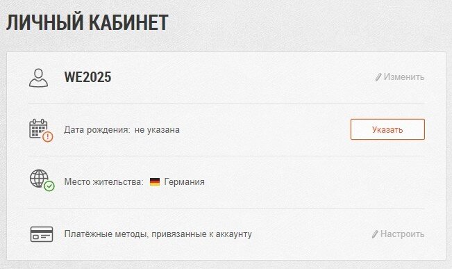Родительский контроль теперь доступен для всех жителей Евросоюза, Европейской экономической зоны, а также Великобритании и Швейцарии. Мы просим игроков EU-региона указать в Личном кабинете полную дату рождения, включая год. Если вы ранее указывали дату рождения, пожалуйста, введите её снова в формате «ДД, ММ, ГГГГ». Этот шаг необходим, чтобы несовершеннолетние игроки не подвергались воздействию контента или продуктов, к которым у них не должно быть доступа в соответствии с местным законодательством. Как указать полную дату рождения