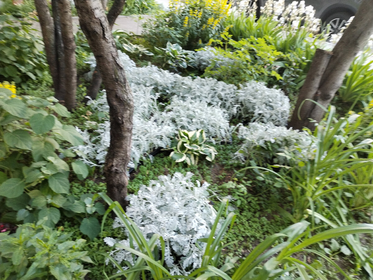 Стою я, значит, придирчиво разглядываю свой палисадник, - планы и рокировки щёлкают в голове, ну будто у какого-то Шерлока от ботаники. И тут идёт наш дворник Гена . Надо отметить, что накануне отряд дворников под предводительством мадам Флоры (она из Жилищника, заведует зелёными насаждениями , обладает ядовито-рыжими волосами, зычным голосом и впечатляющим знанием русского мата) высадил в окрестные клумбы энное количество цинерарии серебристой. И у них... Осталось. Видела я, сколько осталось. Паллеты с рассадой поставили в тенек у соседнего подъезда . В каждой паллете штук 50 (5 на 10 кустиков). Но я думала, что с минуты на минуту рассаду увезут в следующее место. А они, стало быть, "списали". И вот Гена мне говорит: "Надо?" А я: "Не надо..." Ну потому что у меня однолетников - ровно столько, за сколькими я в состоянии ухаживать. Их ведь поливать каждый день! А ваша покорная слуга не железная. Но, как выяснилось, и не каменная. Ибо сутки я наблюдала, как сохнет и грустнеет никому не