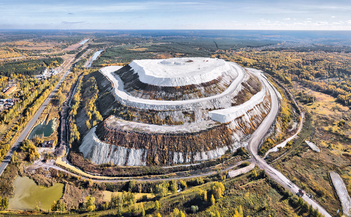 Белая гора, расположенная в окрестностях города Воскресенск, представляет собой уникальное природно-техногенное явление. Этот необычный холм возвышается над типичным подмосковным равнинно-холмистым пейзажем, привлекая внимание своим белоснежным цветом и монументальностью. Высота Белой горы превышает 200 метров, а ширина у основания достигает 700 метров, что делает её заметной даже с большого расстояния. Внешний вид Белой горы напоминает заснеженные вершины далёких гор или инопланетные пейзажи благодаря своему фантастическому виду. Это место стало популярным среди туристов и фотографов, ищущих необычные техногенные объекты и «заброшки» под Москвой. История возникновения Белая гора в окрестностях Воскресенска - это уникальное природно-техногенное явление, возникшее благодаря крупнейшему в Европе Лопатинскому месторождению фосфоритов. С 30-х годов прошлого века здесь ведется добыча фосфорных соединений, необходимых для производства минеральных удобрений. В процессе переработки добытого сы