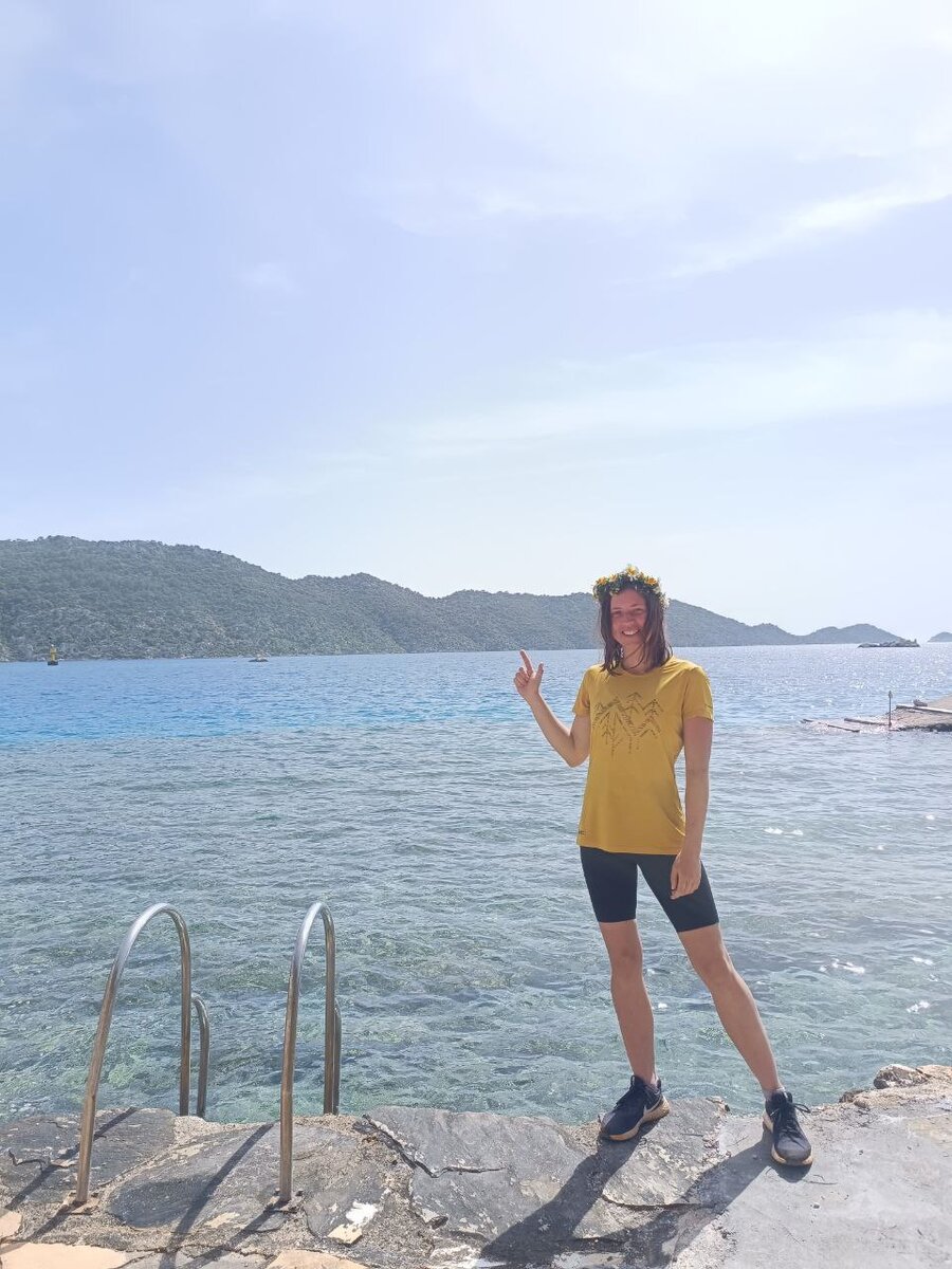 Потом девушка подарила мне свой венок из полевых цветов и мы попрощались, ребята выходили в другой, соседней бухте, недалеко от своей машины. Капитан довёз нас до нужного причала и стал рассказывать своим друзьям, что подобрал таких вот автостопщиков на острове Кекова. Мы поблагодарили его, забрали свои вещи и стали загорать, греться и наслаждаться лучами солнца.