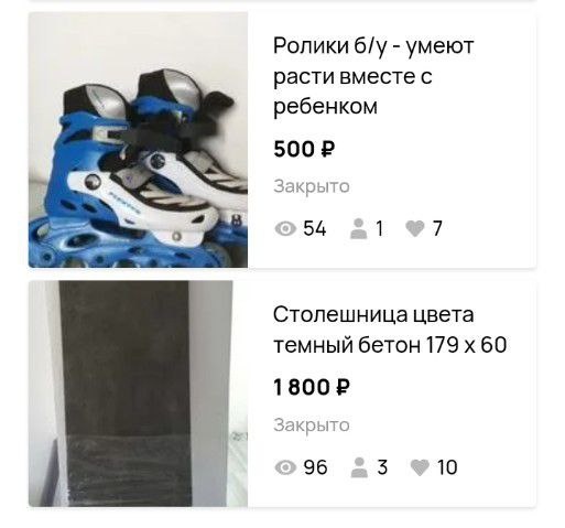 На Авито я с 2018 года. Расхламляться начала почти сразу после переезда в Казань. Казалось, что привезла с собой только все нужное, а нет! Многими вещами в итоге не пользовались. А потом с покупкой квартиры появились и остатки стройматериалов, мебельных материалов и пр. ненужного оборудования. Часть выставляли с аккаунта Нади - эти продажи здесь описывать не буду. Привожу в пример только то, что продавала лично я. Ролики забрали за 3 дня. Столешница улетела в день выпуска объявления, что прямо удивило. И когда у нас появился отрез еще 1 столешни, тоже выложили: Бежевую столешницу продавали уже дешевле, потому что она икеевская, и ламинация там похуже, чем в дорогой первой столешне цвета бетона. Корректор осанки уехал в Новосиб через 2 месяца (долго лежал), а ростовой костюм дракона забрали на следующий день после выхода на Авито. И коньки, и халат забрали в течение недели. Все в Казани, никуда не отправляла. Велосипед и стол обеденный улетели на следующий день после выхода объявления.
