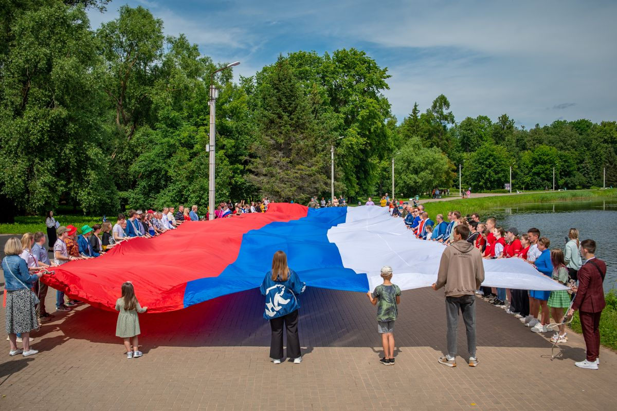 В Великих Луках в День России спели Гимн и развернули многометровый флаг