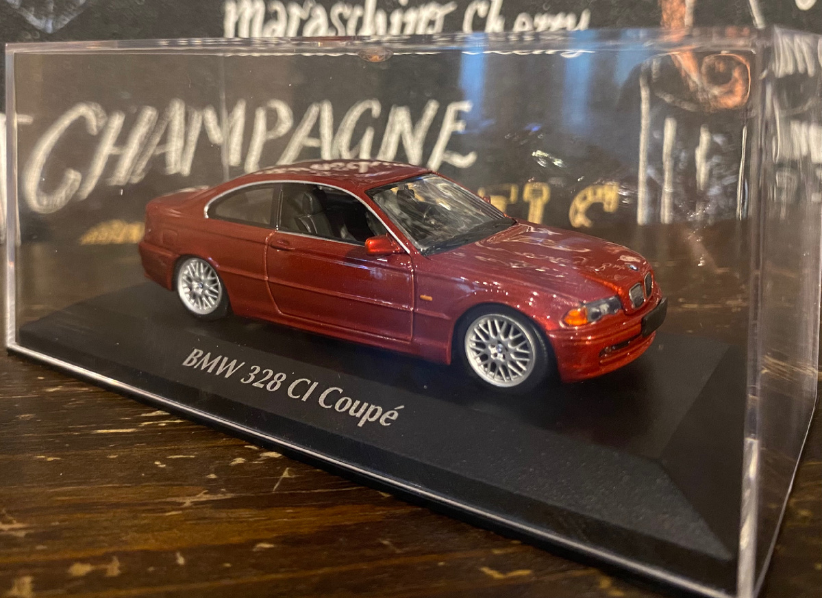 Приветствую, дорогой читатель! Сегодня на обзоре у нас с вами очень интересная машина, между прочим я такую чуть было не купил, но об этом позже. Встречайте BMW 328Ci от Maxichamps в масштабе 1:43. Предлагаю начать обзор данного красивого купе, но сначала немного истории. BMW E46 пришла на смену Е36 в 1998 году. В 1999 году было представлено купе, кабриолет и универсал. В 2001 году появился хэтчбек, который назывался Compact. Также в 2001 году произошел рейстайлинг. Как раз рестайлинговую синюю купеху я себе чуть было не купил. Она была в версии 320 с двигателем М54B22 на 170 лошадок и механикой. Ммм, кайф, конечно были и недостатки в виде черной морды и не работающего ABS, но за нее просили 330к в 2021 году и это была отличная цена, именно поэтому я и не успел ее купить. Но это все лирика. В 2007 году Е46 сняли с производства и на смену ей пришло мое любимое семейство Троек Е90-93. У нас машина в дорестайлинге. Купе обладало меньшим разнообразием двигателей. Базовым двигателем был М43