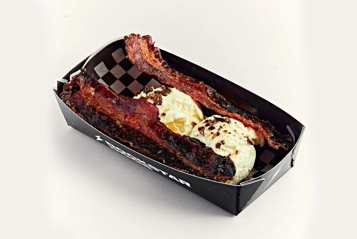 Такое мороженое можно заказывать на завтрак! На самом деле карамелизированный бекон просто кладут рядом с пломбиром, но все-таки рекомендуется есть их не по отдельности, а так, чтобы почувствовать сочетание сладкого и соленого вкусов — в этом фишка десерта.
