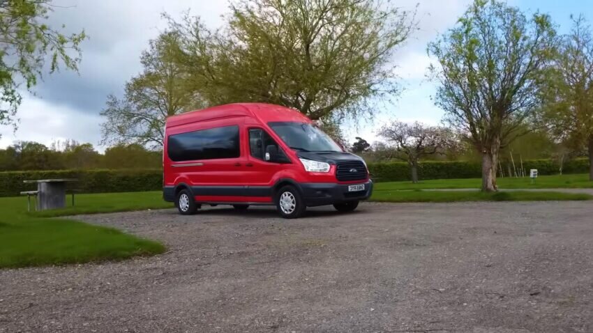 Перед нами Ford Transit 2015 года выпуска со средней колесной базой и очень высокой крышей. Как обычно, начнем экскурсию с экстерьера. Честно говоря, о внешней части этого фургона рассказать особо нечего. Фактически, отсутствие видимых внешних аксессуаров делает его довольно незаметным. Более того, он полностью окрашен в красный цвет, за исключением капота и нижней части, которые окрашены в черный цвет. На крыше автомобиля увидите две солнечные панели мощностью 100 Вт.
