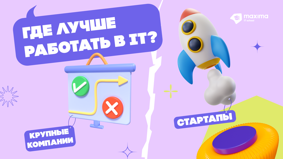 Многие начинающие IT-специалисты мечтают о работе в крупных компаниях. Но мир не ограничивается только ими. На рынке есть много предложений, в том числе от стартапов, к которым тоже стоит присмотреться. У каждого варианты свои плюсы и минусы, разбираемся подробнее. Плюсы работы в стартапе: Минусы работы в стартапе: Плюсы работы в крупной компании: Минусы работы в крупной компании: Вывод: Стоит попробовать работу в стартапе, если ты только в самом начале пути и у тебя еще нет опыта коммерческой разработки, хочешь быстро наработать хард-навыки и попробовать себя в смежных задачах. Если же ты наоборот не любишь распыляться, хочешь выполнять только свои задачи, уверен, что хочешь развиваться в направлении, которое уже выбрал, у тебя уже есть опыт, то стоит отдать предпочтение крупным компаниям. Даже если опыта мало, стоит все равно попробовать! А вы на чьей стороне? Больше о работе и изучении IT — в наших соцсетях. (Например, здесь в телеграм-канале) Больше о том, какими шагами до айти дой
