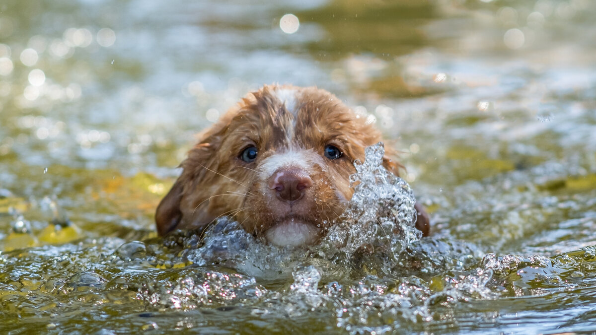 Щенок, наблюдая за девочкой, вдруг прыгнул в воду и поплыл к ней. Неумело, временами скрываясь под водой, но плыл.