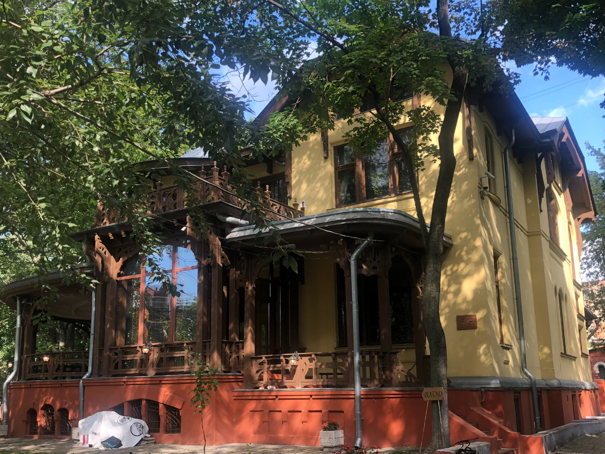 Деревянный модерн в Москве редкость. А этот особняк ещё и сохранил почти полностью свои великолепные интерьеры и обстановку, оконные рамы и двери, напольную плитку, лестницы, работающие камины – всё как было в 1903. В общем, жемчужина! Л.Н. Кекушев, основатель московского модерна, спроектировал в этом доме всё, вплоть до самых мелочей.