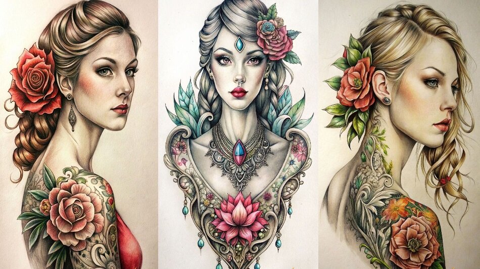 🚩Символика тату: растительные орнаменты, цветы, кролик, бабочки, денежные изображения;