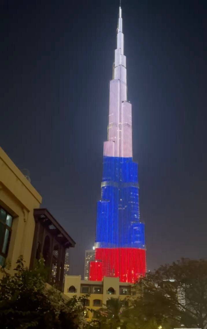 🇷🇺 Башню Бурдж-Халифа в Дубае подсветили в цвета российского флага по случаю Дня России!!!С праздником