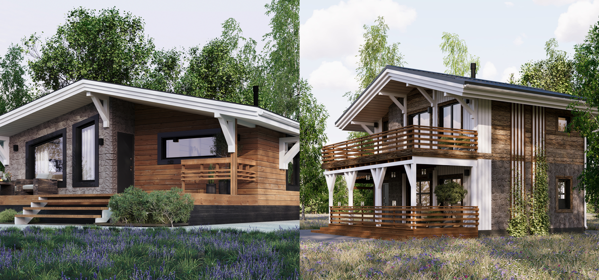 По данным Банка ДОМ.РФ 56% клиентов, которые в 2024 году оформили у них ипотеку, предпочитают одноэтажные дома. 43% выбирают двухэтажные постройки. Стоит добавить, что большую роль здесь играет тенденция к уменьшению земельных участков. Сегодня на рынке огромное число предложений с участками по 6-7 соток. А какой дом выбираете вы? Ниже познакомим с разными вариантами от строительной компании PazlDom: визуализация проектов и планировки. А затем - дело за вами, голосуйте, что больше подходит вам. Два варианта двухэтажных домов: Шале 90 и Прерии 141. А вот варианты одноэтажных домов из этой же линейки: Шале 65 и Прерии 86.