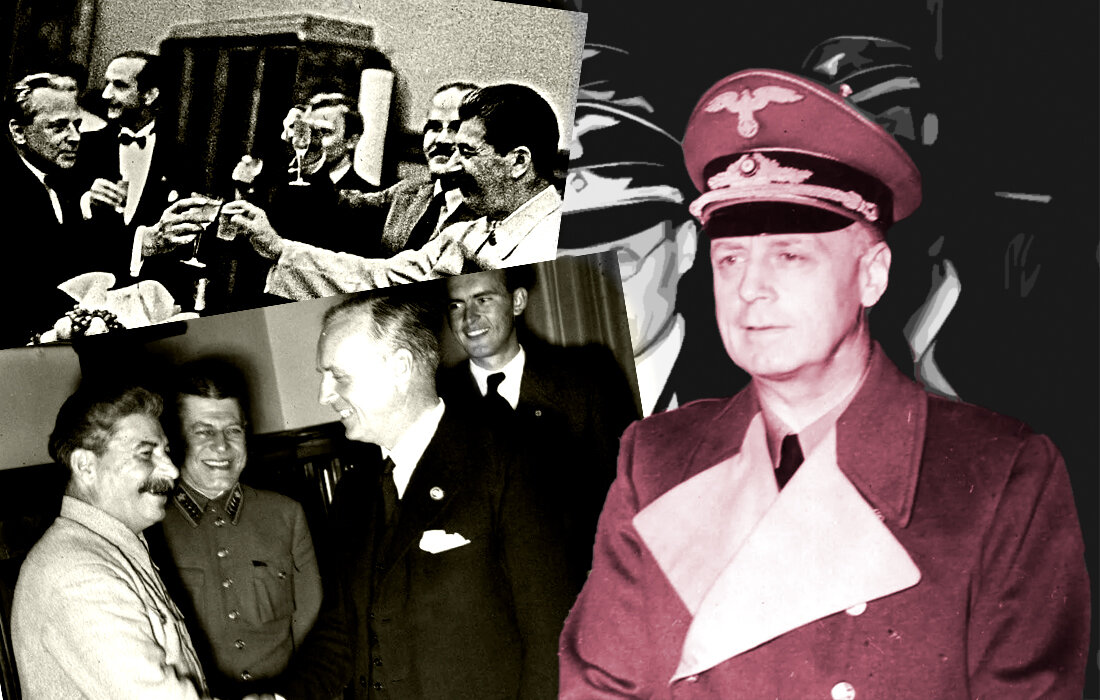 На встрече со Сталиным Риббентроп нагло поднял тост "За Гитлера" Сталин ответил , и перекошенным нацистам пришлось исполнять его волю
